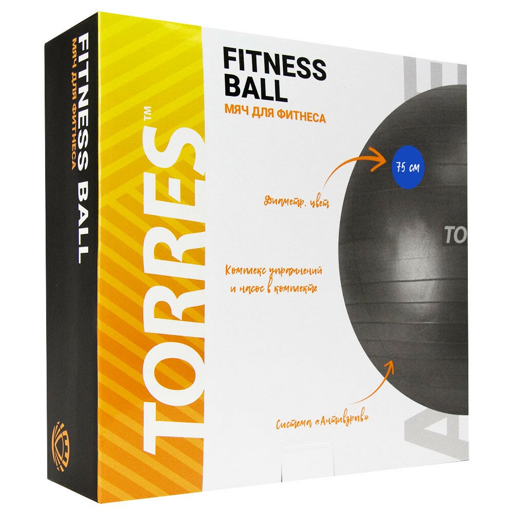 Фитбол Torres AL121175BL, 75 см, гладкий, с насосом, синий