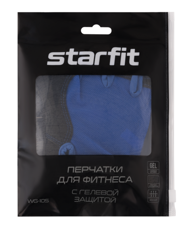 Перчатки для фитнеса StarFit WG-105, черный/синий, разм. S