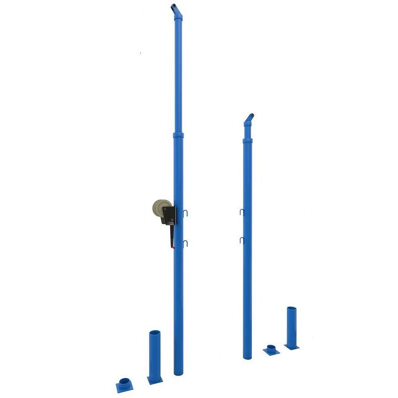 Стойки волейбольные телескопические. Телескопическая конструкция стоек позволяет регулировать высоту сетки и устанавливать ее в стандартное положение для женского волейбола и для мужского. Удобное натяжение сетки с помощью храповика. Стаканы со специальными пазами, фиксируют от прокручивания стойки. При необходимости стойки вынимаются и стаканы закрываются крышками.