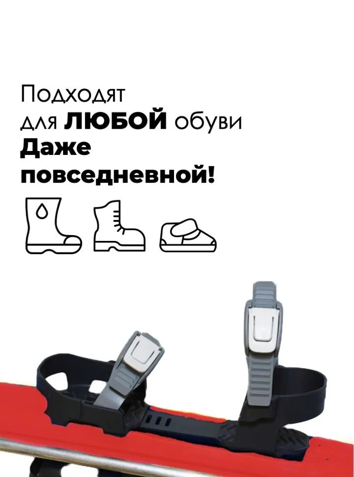- Раздвижные крепления для диапазона размеров обуви 20-27 см (внешняя длина ботинка)