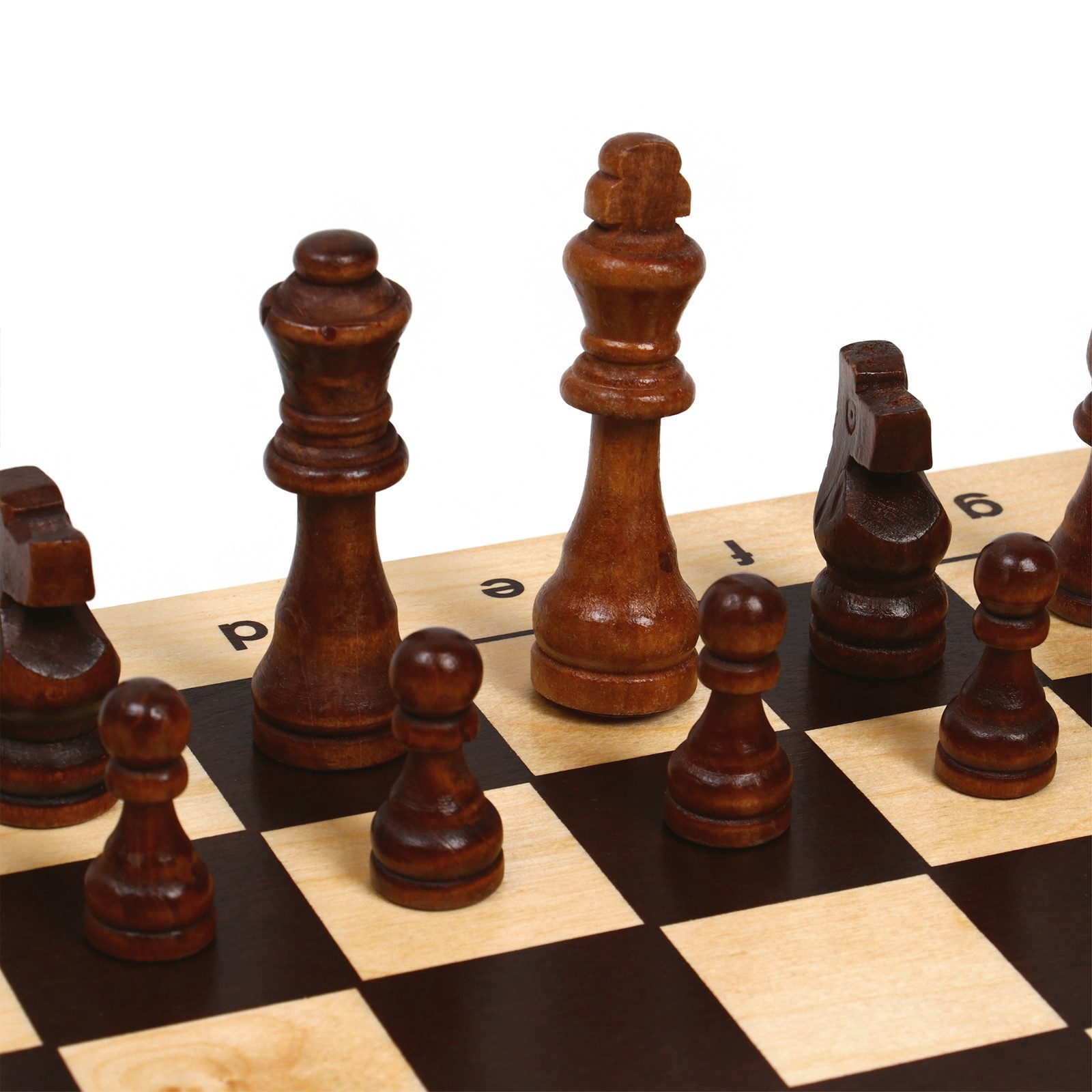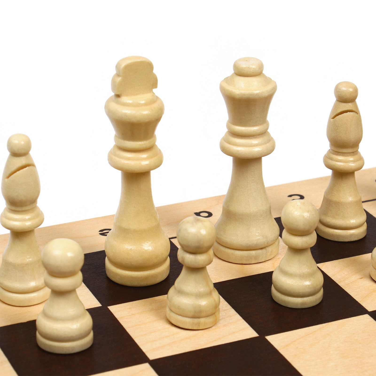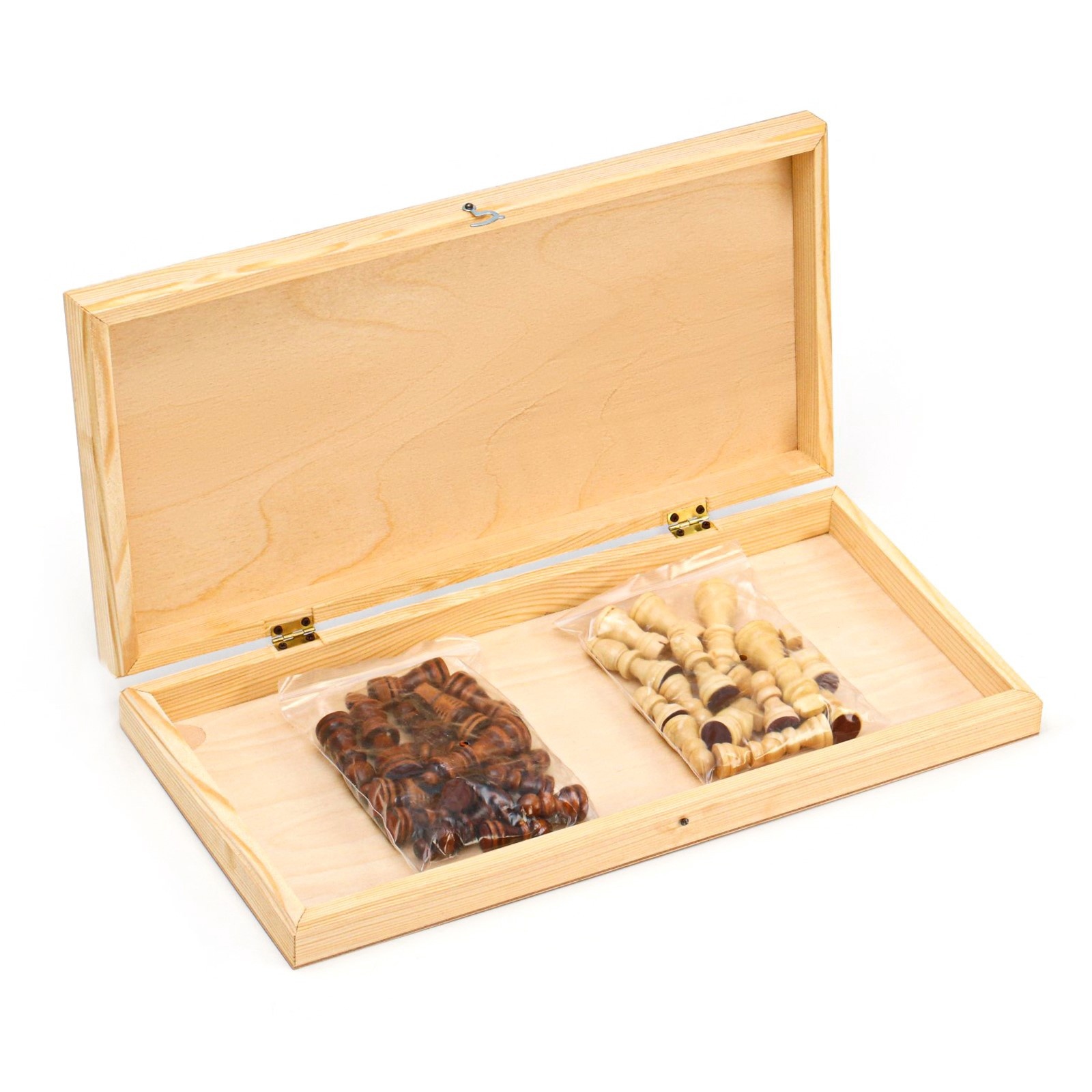Шахматная деревянная лакированная доска из качественных пиломатериалов: каркас выполнен из сосны, поле - берёзовая фанера. Размер доски в разложенном виде 43 х 43 см. Доска имеет аккуратную и надежную фурнитуру и вместительный отсек для хранения.