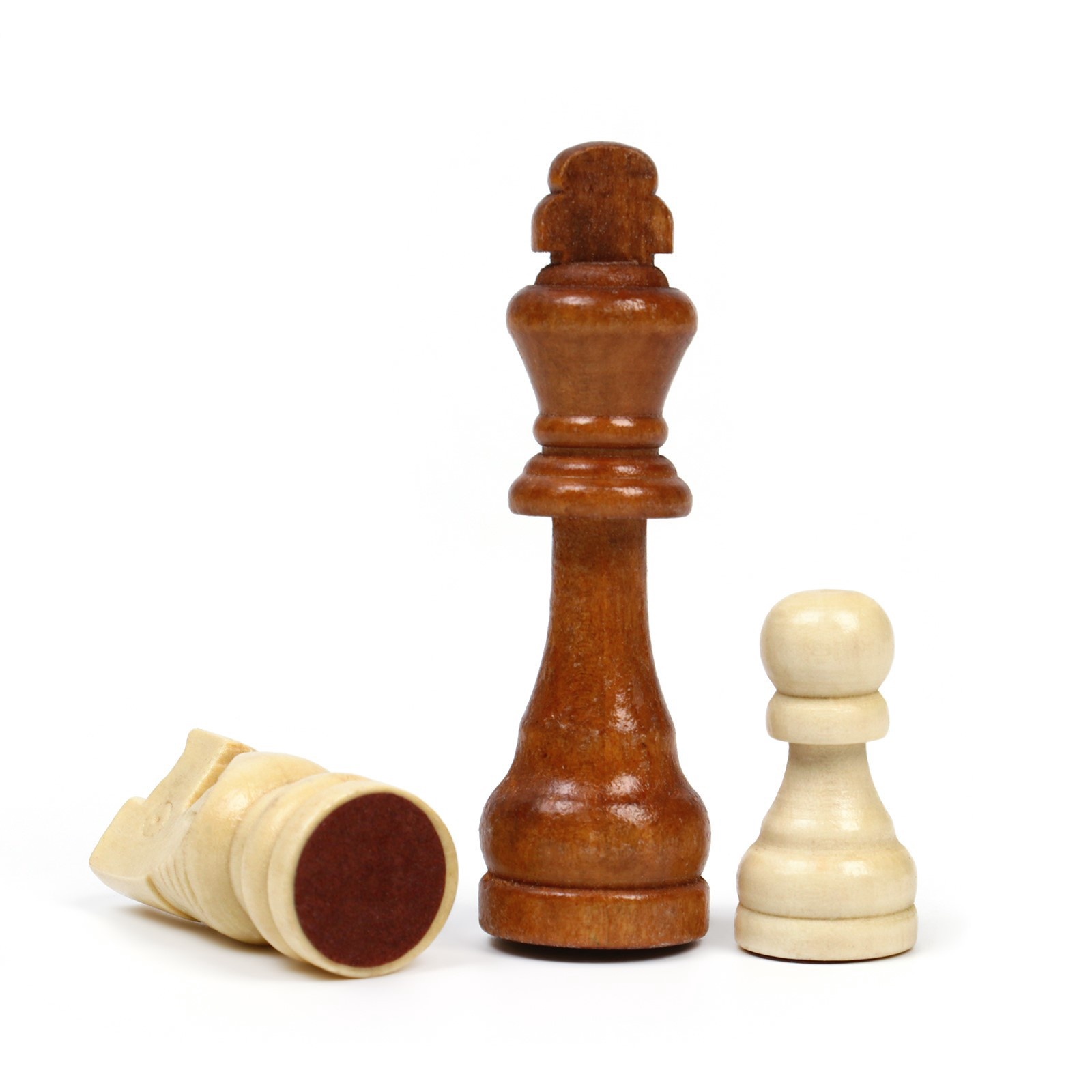 Фигуры приятно и удобно держать в руке. Они выполнены из высококачественного экологически чистого дерева, покрыты лаком, что обеспечивает привлекательный внешний вид и длительный срок службы. Основание фигур из бархатной подложки придает фигуре более устойчивое положение на доске и устраняет появление царапин на шахматном поле.