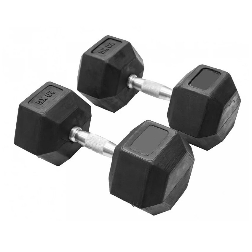 Гантели цельнолитые шестигранные Металл+резина, 20 кг, пара, черный